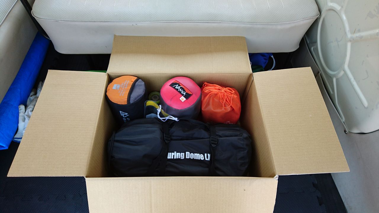 キャンプ場にもレンタルはあるんですが、ソロキャンの道具はどれくらいの量なのかも体験してみたかったんで、ネットレンタルにしました。