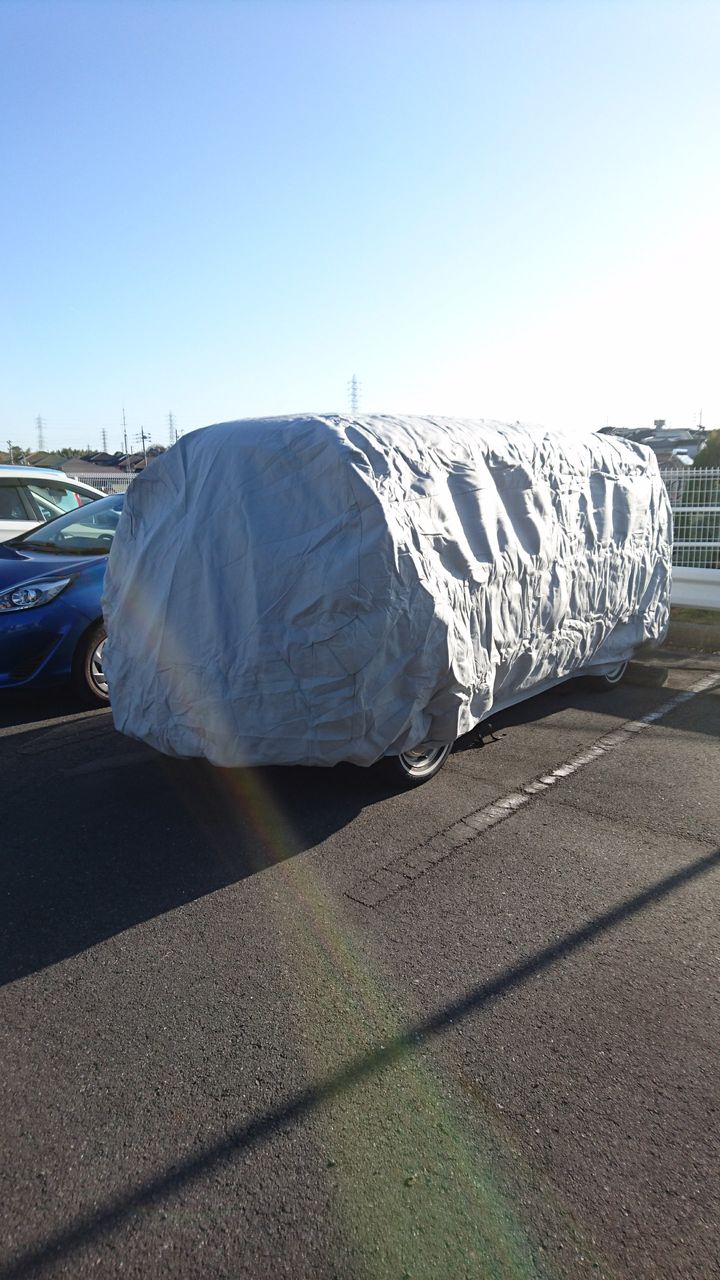 車庫やガレージがある場合はそのままでも大丈夫ですが、僕は青空駐車なので防犯もかねて、上からボディカバー掛けて乾かしました。