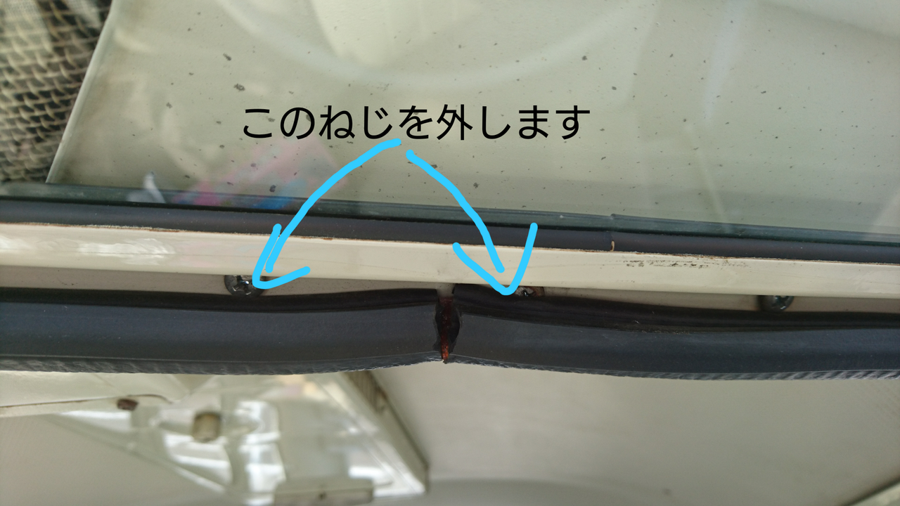で、よく見てみたところ、ウインドウシールが劣化して、ベースからゴムチューブが一部外れていました。