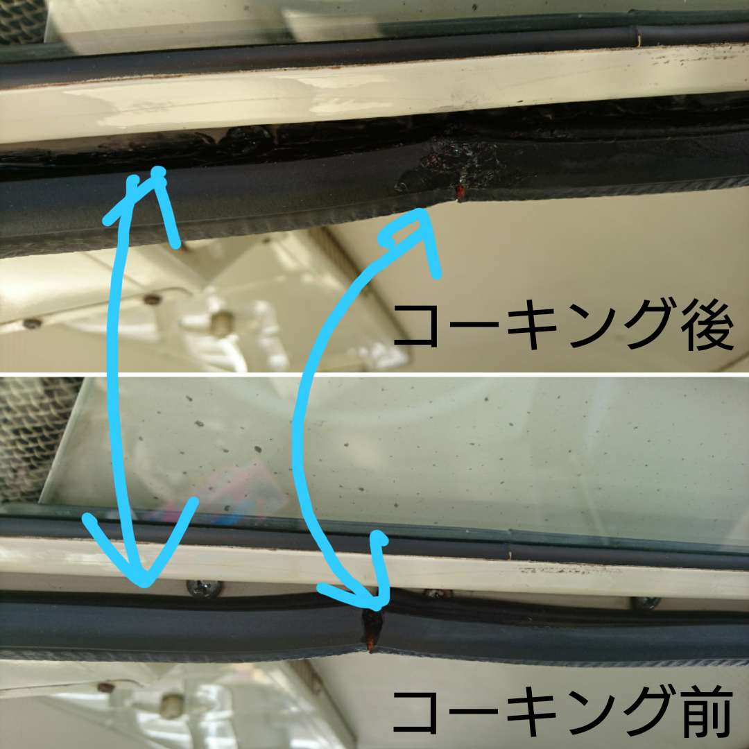 最初やった時にここのコーキングを忘れてしまい、雨が降ったらダダ漏れになった事がありますw